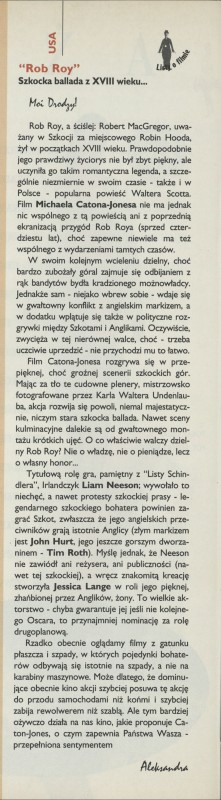 Archiwum / Listy o filmie nr 2611 (28/1995) 110483/123969 Podziel się Tytuł Listy o filmie Autor Aleksandra Rubryka Listy o filmie Artykuł z numeru 2611 (28/1995) Data wydania 9 lipca 1995 Tagi Rob Roy Michael Caton-Jones