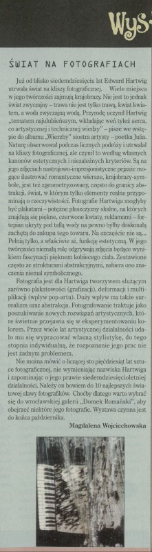 Archiwum nr 2831 (28/1999) 2490/2493 Podziel się Tytuł Świat na fotografiach Autor Magdalena Wojciechowska Artykuł z numeru 2831 (2832/1999) Data wydania 26 września 1999 Tagi wystawy