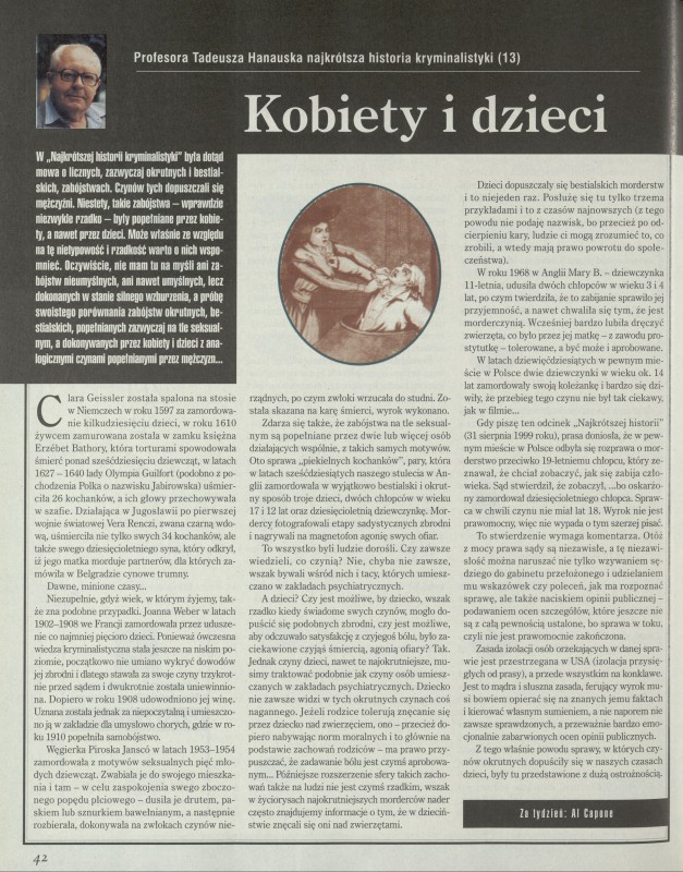 Archiwum nr 2831 (28/1999) 04/13 Podziel się Tytuł Kobiety i dzieci Autor Tadeusz Hanausek Artykuł z numeru 2831 (2832/1999) Data wydania 26 września 1999 Tagi kryminalistyka