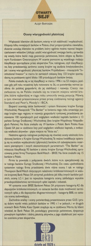 Archiwum / Reklamy nr 2657 (21/1996) 88/147 Podziel się Tytuł Otwarty sejf. Oceny wiarygodności płatniczej Autor Alojzy Bartoszek Rubryka Reklamy Artykuł z numeru 2657 (21/1996) Data wydania 26 maja 1996 Tagi PEKAO