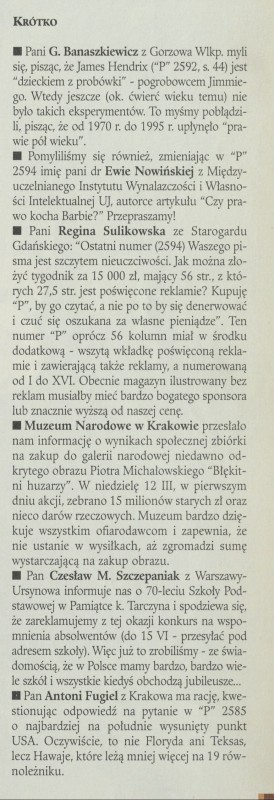 Archiwum / Krótko nr 2598 (15/1995) 109757/123969 Podziel się Tytuł Krótko Rubryka Krótko Artykuł z numeru 2598 (15/1995) Data wydania 9 kwietnia 1995