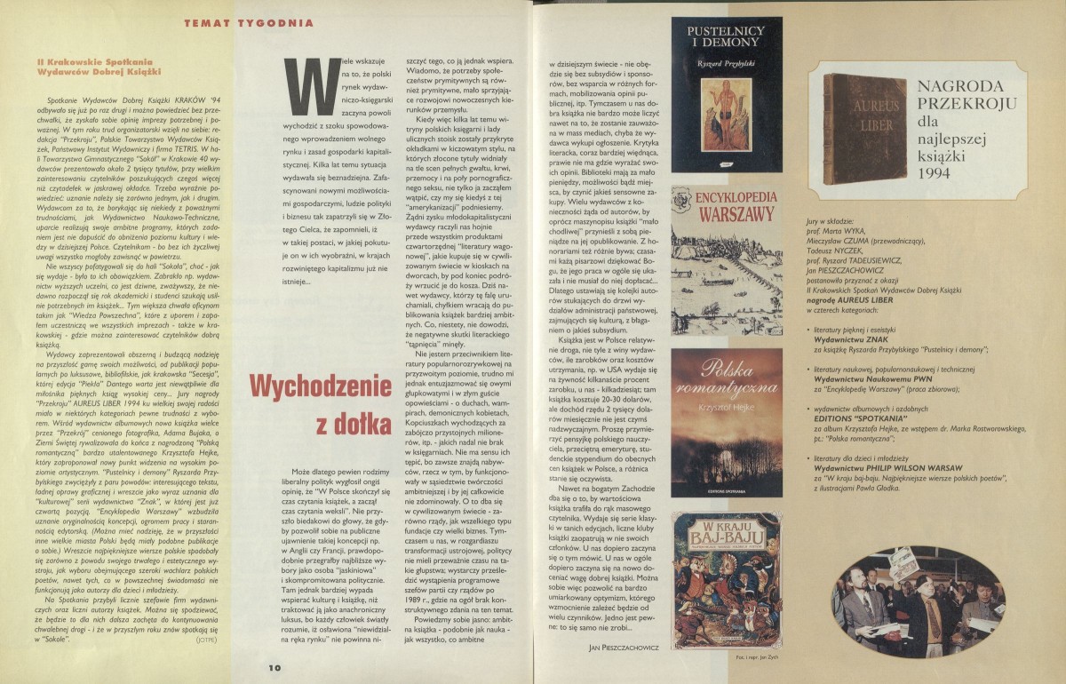 Archiwum / Artykuł nr specjalny 44/1994 12/54 Podziel się Tytuł Wychodzenie z dołka Autor Jan Pieszczachowicz Kategoria Artykuł Artykuł z numeru nr specjalny 44/1994 Data wydania 30 października 1994 Tagi rynek wydawniczo-księgarski książki literatura