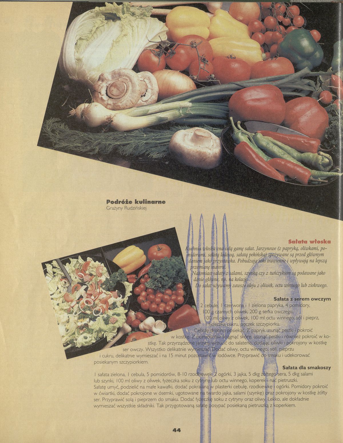 Archiwum / Różności nr specjalny 44/1994 03/10 Podziel się Tytuł Podróże kulinarne Autor Grażyna Rudzińska Kategoria Różności Artykuł z numeru nr specjalny 44/1994 Data wydania 30 października 1994 Tagi kuchnia podróże kulinarne Włochy sałatki