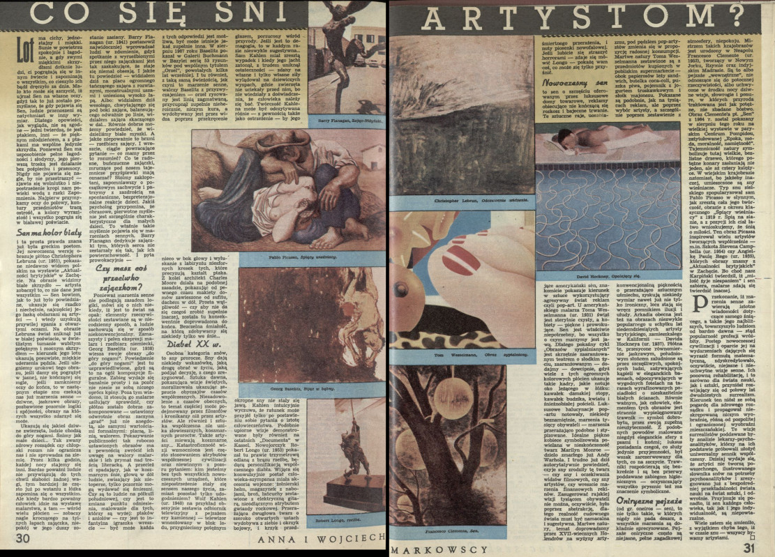 Archiwum / Artykuł nr 2219-20 (51-52/1987) 149/156 Podziel się Tytuł Co się śni artystom? Autor Markowscy Kategoria Artykuł Artykuł z numeru 2219-20 (51/1987) Data wydania 20 grudnia 1987 Tagi marzenia senne sen s ztuka malarstwo obraz