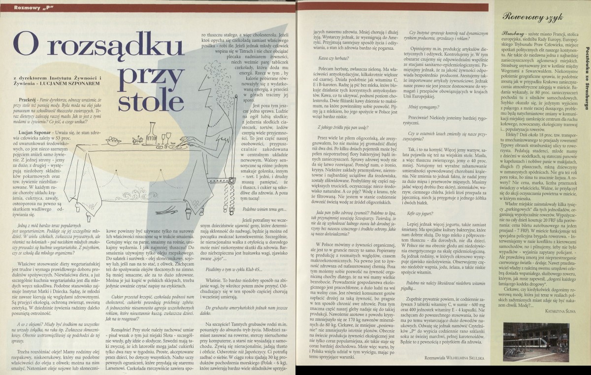 Archiwum / Rozmowy „Przekroju” nr specjalny 11/1996 112313/123969 Podziel się Tytuł O rozsądku przy stole Autor Skulska Wilelmina Rubryka Rozmowy „Przekroju” Artykuł z numeru nr specjalny 11/1996 Data wydania 17 marca 1996 Tagi żywienie stan zdrowia żywność
