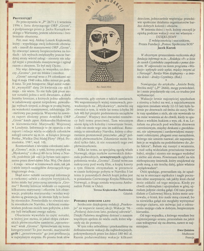 Archiwum / Listy do i od redakcji nr 2676 (40/1996) 113959/123969 Podziel się Tytuł Do i od redakcji Rubryka Listy do i od redakcji Artykuł z numeru 2676 (40/1996) Data wydania 6 października 1996 Tagi wrak