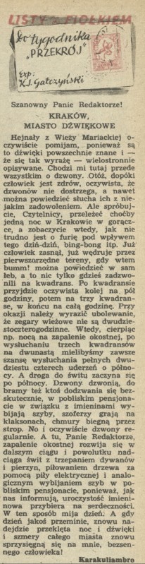 Archiwum / Listy z fiołkiem nr 130 (40/1947) 45/116 Podziel się Tytuł Kraków, miasto dźwiękowe Autor Konstatny Ildefons (Karakuliambro) Gałczyński Rubryka Listy z fiołkiem Artykuł z numeru 130 (40/1947) Data wydania 5 października 1947