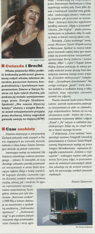 Archiwum / Relacja nr 2679 (43/1996) 487/2857 Podziel się Tytuł Czas osobisty Autor Dorota Grabowska Kategoria Relacja Artykuł z numeru 2679 (43/1996) Data wydania 27 października 1996 Tagi Zachęta
