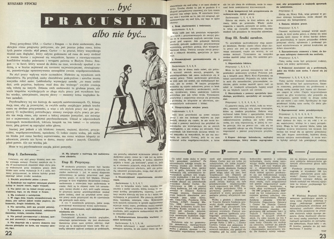 Archiwum / Artykuł nr 2520 (41/1993) 105405/123969 Podziel się Tytuł ...być pracusiem albo nie być... Autor Ryszard Stocki Kategoria Artykuł Artykuł z numeru 2520 (41/1993) Data wydania 10 października 1993