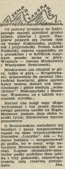 Archiwum / Szmery nr 130 (40/1947) 169/230 Podziel się Tytuł Szeryf Zakopanego Autor Jan Rubryka Szmery Artykuł z numeru 130 (40/1947) Data wydania 5 października 1947 Tagi Zakopane Władysłw Broniewski przestępczość