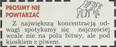 Archiwum / Prosimy nie powtarzać nr specjalny 13/1996 112449/123969 Podziel się Tytuł Prosimy nie powtarzać Rubryka Prosimy nie powtarzać Artykuł z numeru nr specjalny 13/1996 Data wydania 31 marca 1996 Tagi odwaga