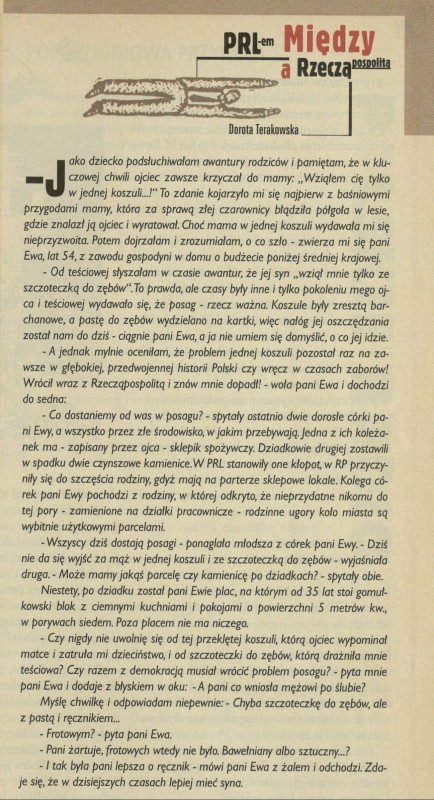 Archiwum / Felieton nr specjalny 16/1996 19/68 Podziel się Tytuł Między PRL-em a Rzecząpospolitą Autor Dorota Terakowska Kategoria Felieton Artykuł z numeru nr specjalny 16/1996 Data wydania 21 kwietnia 1996 Tagi felieton PRL Rzeczpospolita