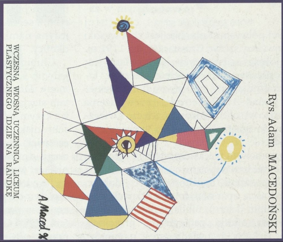 Archiwum / Rozmaitości [old] nr specjalny 16/1996 10/10 Podziel się Tytuł Wczesną wiosną uczennica liceum plastycznego idzie na randkę Autor Adam Macedoński Rubryka Rozmaitości [old] Artykuł z numeru nr specjalny 16/1996 Data wydania 21 kwietnia 1996 Tagi rysunek rozmaitości rozrywka