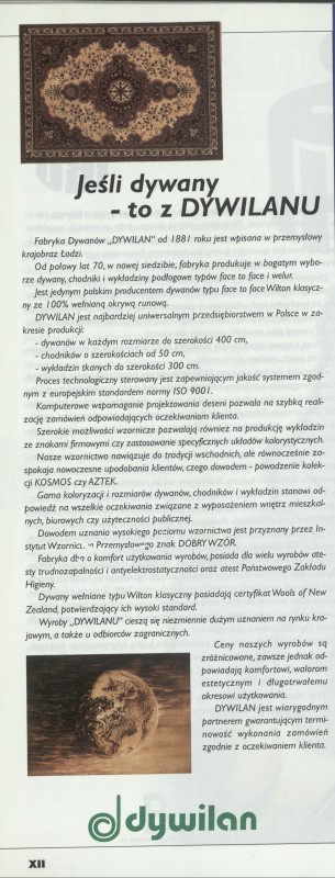 Archiwum nr 2686 (50/1996) 1/2 Podziel się Tytuł Jeśli dywany-to z DYWILANU Artykuł z numeru 2686 (50/1996) Data wydania 15 grudnia 1996 Tagi dywan
