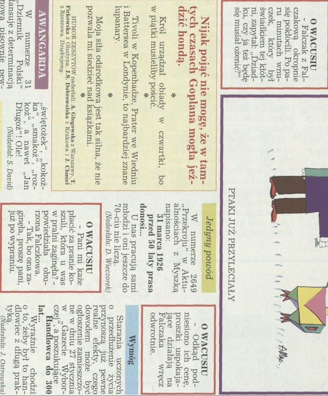 Archiwum / O Wacusiu nr specjalny 18/1996 11283/123969 Podziel się Tytuł O Wacusiu Rubryka O Wacusiu Artykuł z numeru nr specjalny 18/1996 Data wydania 5 maja 1996 Tagi rozrywka rozmaitości