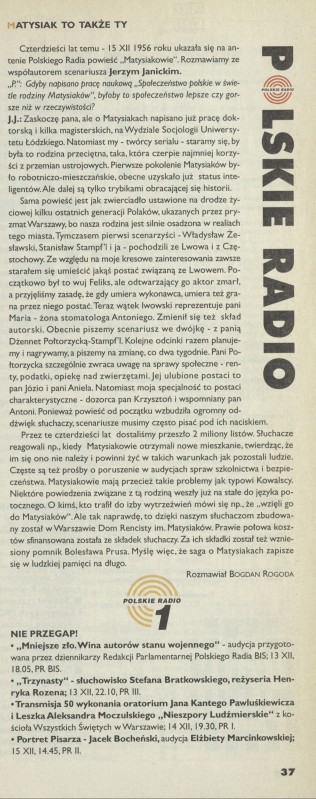 Archiwum nr 2686 (50/1996) 123/2857 Podziel się Tytuł Polskie radio Autor Bogdan Rodoga Artykuł z numeru 2686 (50/1996) Data wydania 15 grudnia 1996 Tagi Matysiakowie