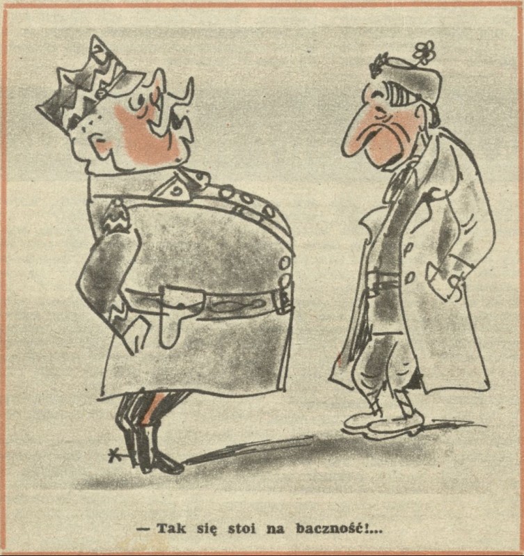 Archiwum / Historyjki obrazkowe nr 133 (43/1947) 3897/123969 Podziel się Tytuł Tak się stoi na baczność! Autor Jerzy Zaruba Kategoria Historyjki obrazkowe Artykuł z numeru 133 (43/1947) Data wydania 26 października 1947