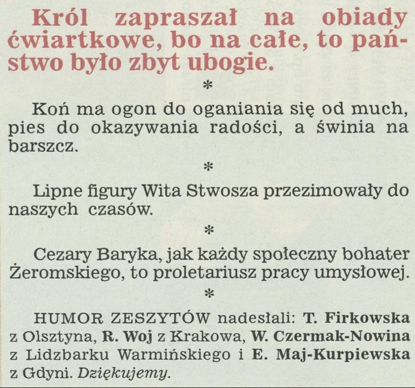 Archiwum / Humor zeszytów szkolnych nr 2730 (42/1997) 10/47 Podziel się Tytuł Humor zeszytów Rubryka Humor zeszytów szkolnych Artykuł z numeru 2730 (42/1997) Data wydania 19 października 1997 Tagi humor zeszyt