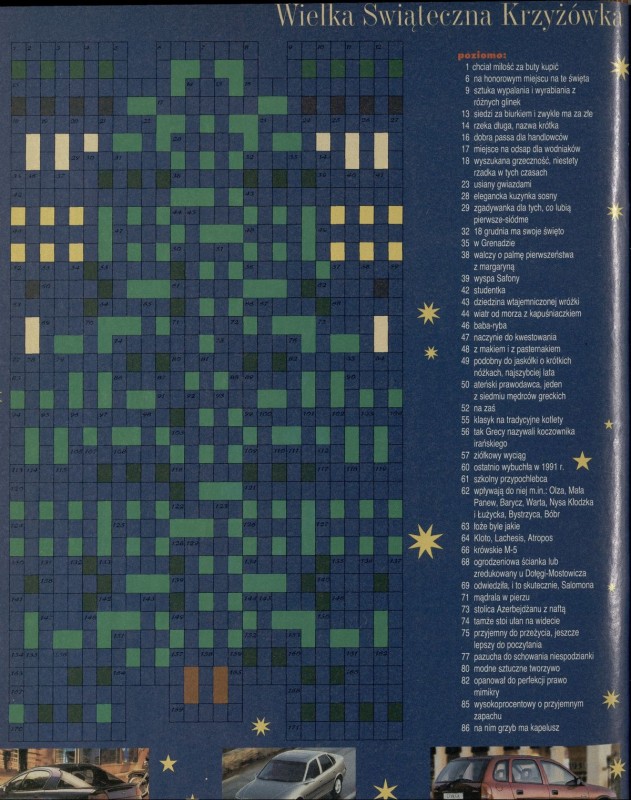 Archiwum / Krzyżówka nr 2687-88 (51-52/1996) 03/1059 Podziel się Tytuł krzyżówka Rubryka Krzyżówka Artykuł z numeru 2687-88 (51/1996) Data wydania 22 grudnia 1996 Tagi rozrywka zdrowa i tania