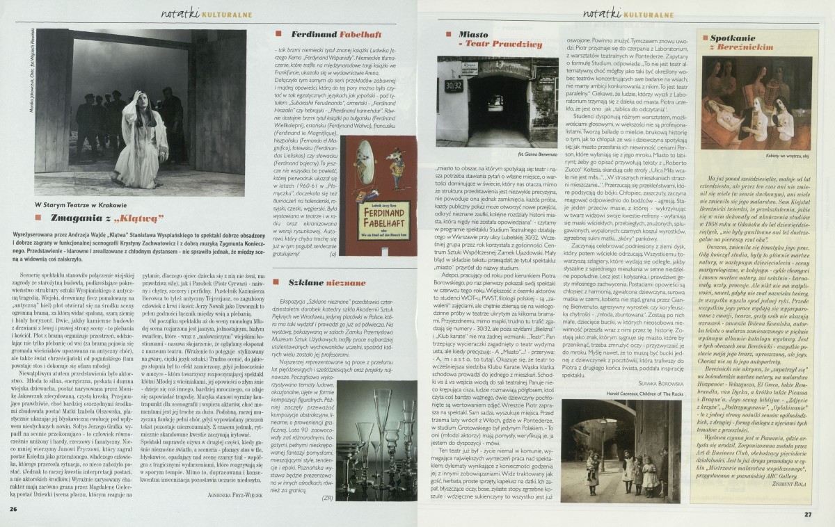 Archiwum / Kultura nr 2732 (44/1997) 117137/123969 Podziel się Tytuł Notatki kulturalne Kategoria Kultura Artykuł z numeru 2732 (44/1997) Data wydania 2 listopada 1997