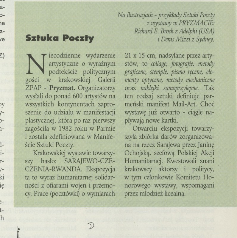 Archiwum / Różności nr 2614 (31/1995) 13313/123969 Podziel się Tytuł Sztuka poczty Kategoria Różności Artykuł z numeru 2614 (31/1995) Data wydania 30 lipca 1995 Tagi sarajewo poczta korespondencja