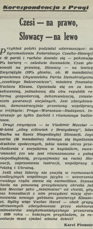 Archiwum / korespondencja własna "Przekroju" nr 2451 (24/1992) 02/17 Podziel się Tytuł Czesi na prawo Słowacy na lewo Autor Pleszaty Karel Rubryka korespondencja własna "Przekroju" Artykuł z numeru 2451 (2452/1992) Data wydania 14 czerwca 1992