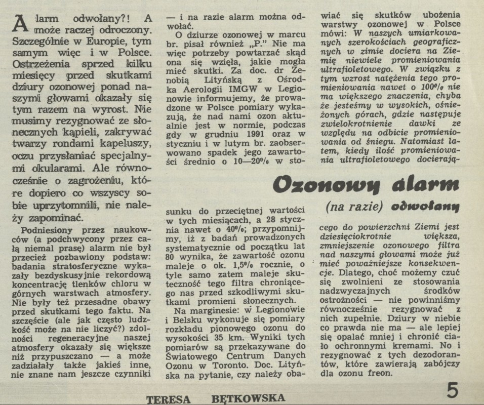 Archiwum / Artykuł nr 2451 (24/1992) 101709/123969 Podziel się Tytuł Ozonowy alarm na razie odwołany Autor Teresa Bętkowska Kategoria Artykuł Artykuł z numeru 2451 (2452/1992) Data wydania 14 czerwca 1992