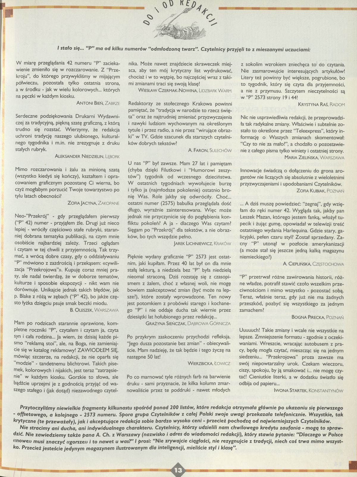 Archiwum / Listy do i od redakcji nr 2577 (46/1994) 108555/123969 Podziel się Tytuł Listy do i od redakcji Rubryka Listy do i od redakcji Artykuł z numeru 2577 (46/1994) Data wydania 13 listopada 1994