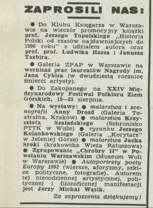 Archiwum / Zaprosili nas nr 2459 (24/1992) 102143/123969 Podziel się Tytuł Zaprosili nas Rubryka Zaprosili nas Artykuł z numeru 2459 (2460/1992) Data wydania 9 sierpnia 1992