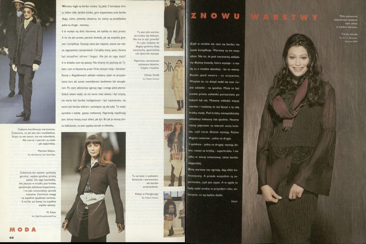 Archiwum / Moda nr 2577 (46/1994) 00/641 Podziel się Tytuł Moda Autor Barbara Hoff Rubryka Moda Artykuł z numeru 2577 (46/1994) Data wydania 13 listopada 1994