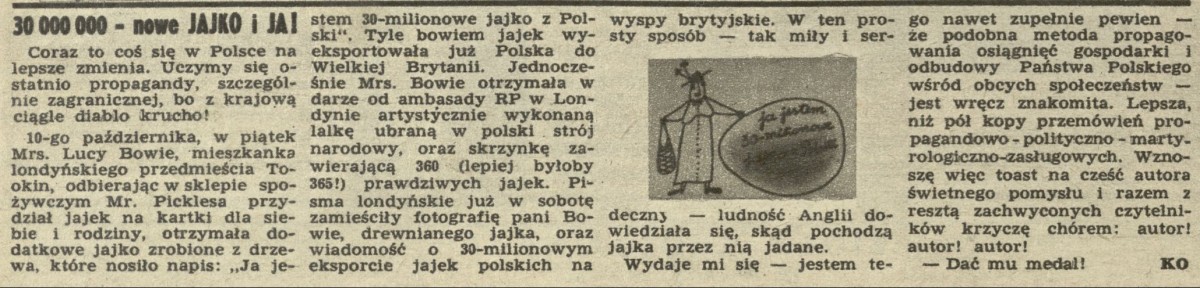 Archiwum / Rozmaitości [old] nr 133 (43/1947) 16/28 Podziel się Tytuł 30 000 - nowe jajko i ja! Rubryka Rozmaitości [old] Artykuł z numeru 133 (43/1947) Data wydania 26 października 1947