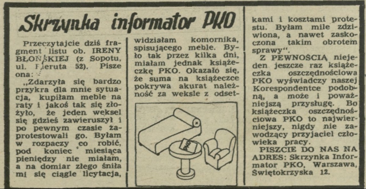 Archiwum / Reklamy nr 487 (32/1954) 18092/123969 Podziel się Tytuł Skrzynka informator PKO Rubryka Reklamy Artykuł z numeru 487 (32/1954) Data wydania 8 sierpnia 1954 Tagi weksel licytacja
