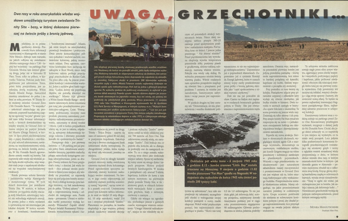 Archiwum / Różności nr 2615 (32/1995) 18/43 Podziel się Tytuł Uwaga, grzechotniki... Autor Monika Manoutschehri Kategoria Różności Artykuł z numeru 2615 (32/1995) Data wydania 6 sierpnia 1995 Tagi little boy fat man bomba atomowa hiroszima