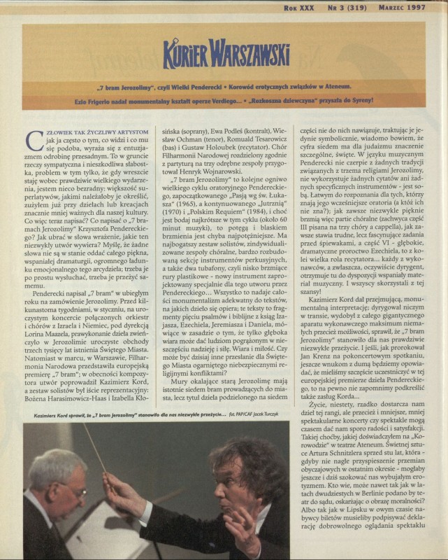 Archiwum / Kurier Warszawski nr 2702 (14/1997) 115400/123969 Podziel się Tytuł Kurier Warszawski Autor Lucjan Kydryński Rubryka Kurier Warszawski Artykuł z numeru 2702 (14/1997) Data wydania 6 kwietnia 1997 Tagi Kord