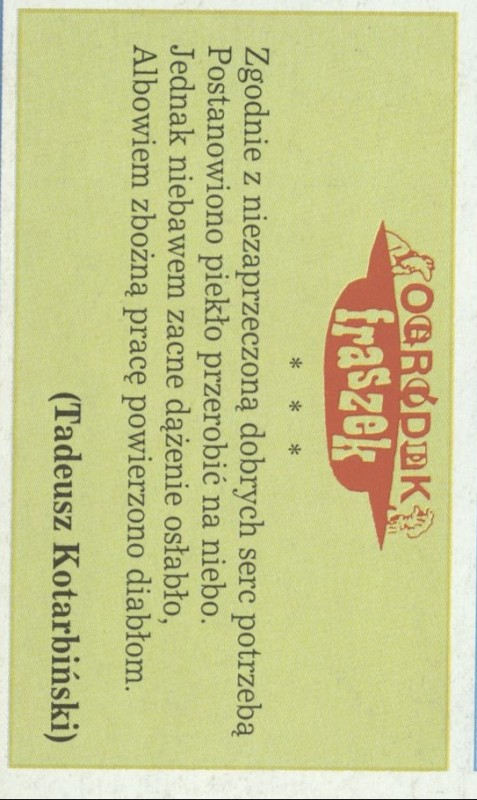 Archiwum / Poezja nr 2615 (32/1995) 110716/123969 Podziel się Tytuł Ogródek fraszek Kategoria Poezja Artykuł z numeru 2615 (32/1995) Data wydania 6 sierpnia 1995 Tagi ogródek fraszek