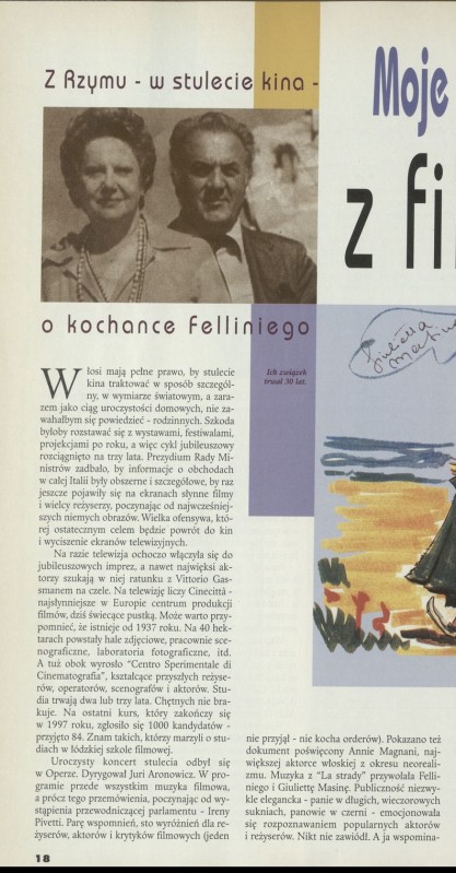 Archiwum / Film nr 2616 (33/1995) 15076/28129 Podziel się Tytuł Moje przygody z filmem Autor Jerzy Hordyński Rubryka Film Artykuł z numeru 2616 (33/1995) Data wydania 13 sierpnia 1995 Tagi Fellini film włochy