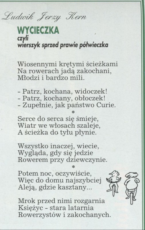 Archiwum / Rozmaitości [old] nr specjalny 23/1996 232/322 Podziel się Tytuł Wycieczka, czyli wierszyk sprzed prawie półwieczka Autor Ludwik Jerzy Kern Rubryka Rozmaitości [old] Artykuł z numeru nr specjalny 23/1996 Data wydania 9 czerwca 1996 Tagi Ludwik Jerzy Kern wiersz rozmaitości