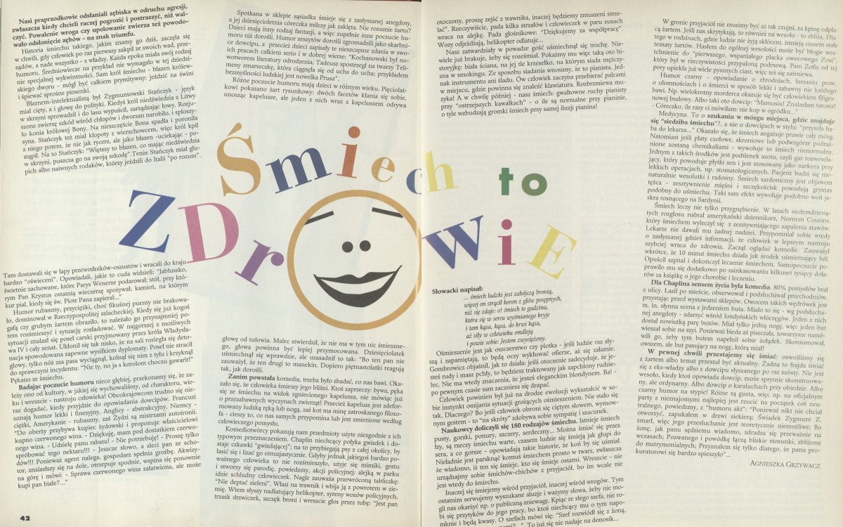 Archiwum / Artykuł nr 2585 (02/1995) 14972/123969 Podziel się Tytuł Śmiech to zdrowie Autor Agnieszka Grzywacz Kategoria Artykuł Artykuł z numeru 2585 (2/1995) Data wydania 8 stycznia 1995