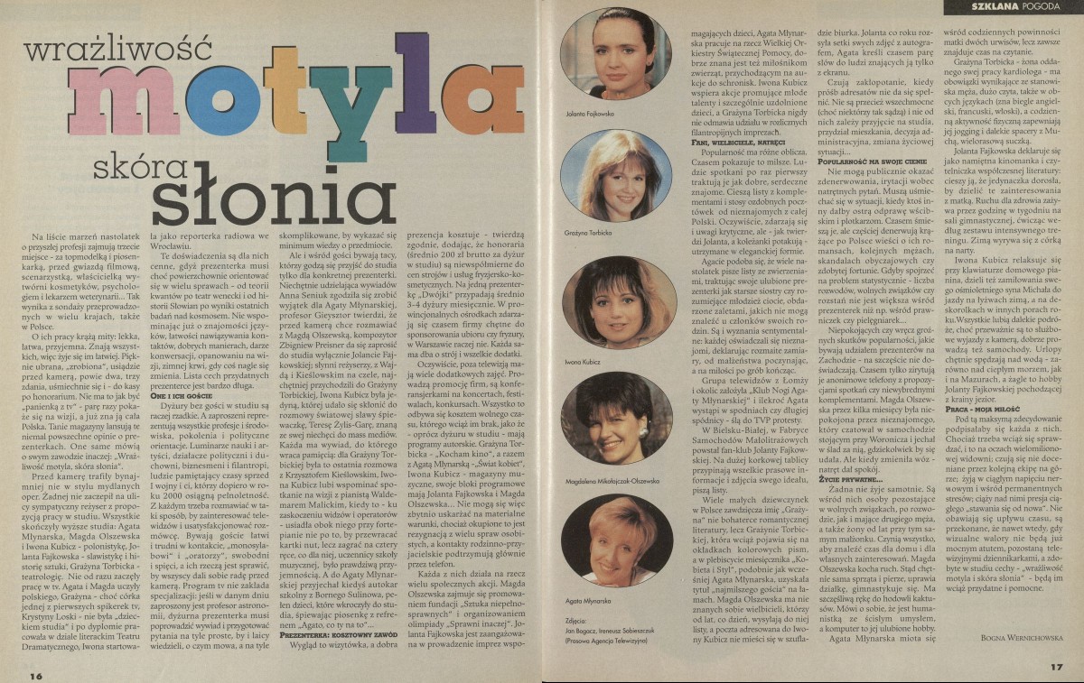Archiwum / Artykuł nr specjalny 24/1996 88/206 Podziel się Tytuł Wrażliwość motyla, skóra słonia Autor Bo Wer Kategoria Artykuł Artykuł z numeru nr specjalny 24/1996 Data wydania 16 czerwca 1996 Tagi zawód prezenterka telewizyjna