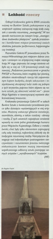 Archiwum / Recenzja nr 2707 (19/1997) 115674/123969 Podziel się Tytuł Lekkość rzeczy Kategoria Recenzja Artykuł z numeru 2707 (19/1997) Data wydania 11 maja 1997 Tagi rzeźba Bunkier Sztuki Galeria AT