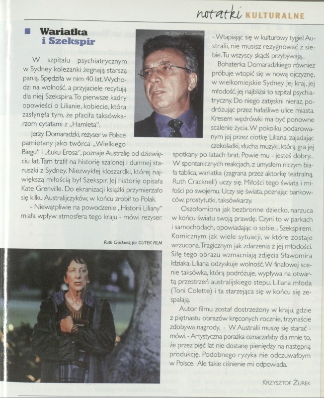 Archiwum / Film nr 2707 (19/1997) 115675/123969 Podziel się Tytuł Wariatka i Szekspir Autor Krzysztof Żurek Rubryka Film Artykuł z numeru 2707 (19/1997) Data wydania 11 maja 1997 Tagi kinematografia polska "Historia Lilinay" Jerzy Domaradzki Bee Miles