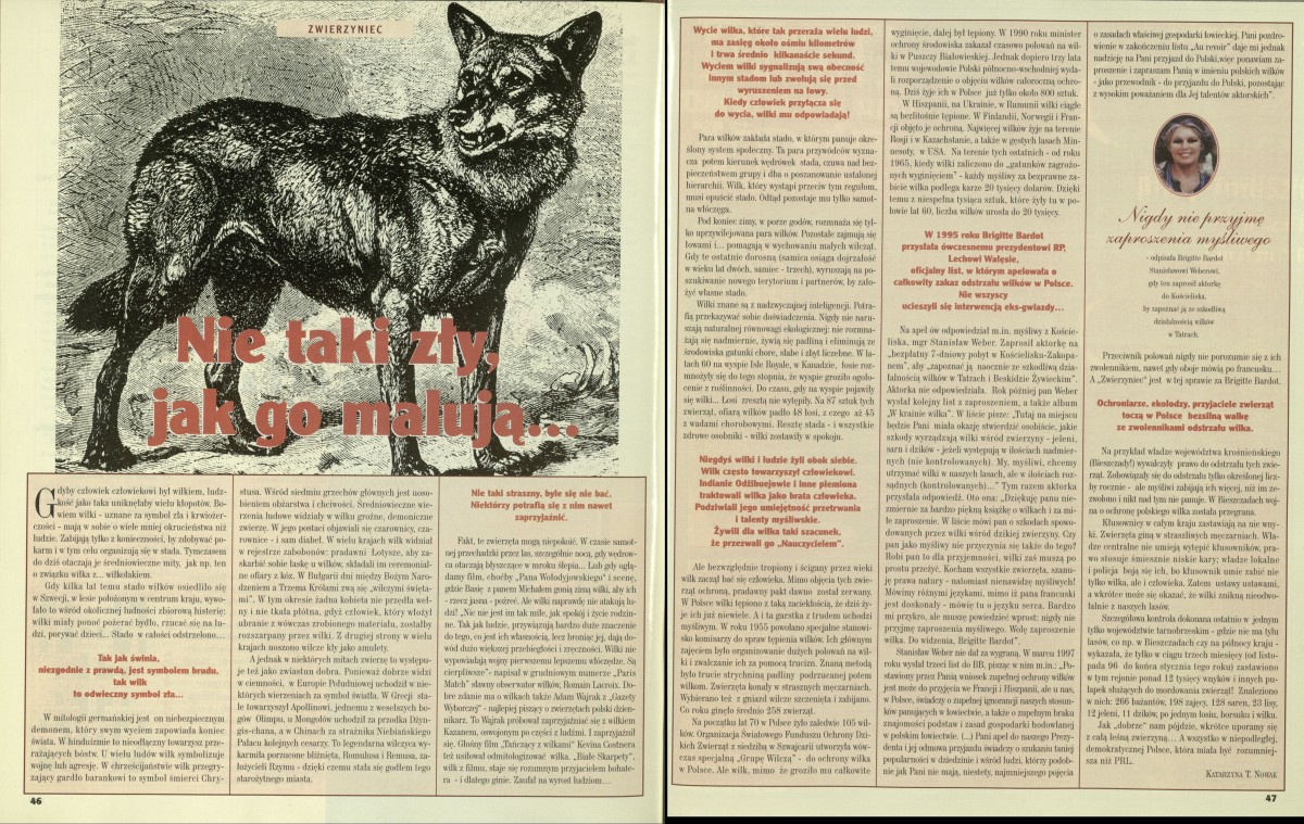 Archiwum / Artykuł nr 2707 (19/1997) 115707/123969 Podziel się Tytuł Nie taki zły, jak go malują.. Autor Katarzyna T.Nowak Kategoria Artykuł Artykuł z numeru 2707 (19/1997) Data wydania 11 maja 1997 Tagi zwierzyniec wilk zwierzęta