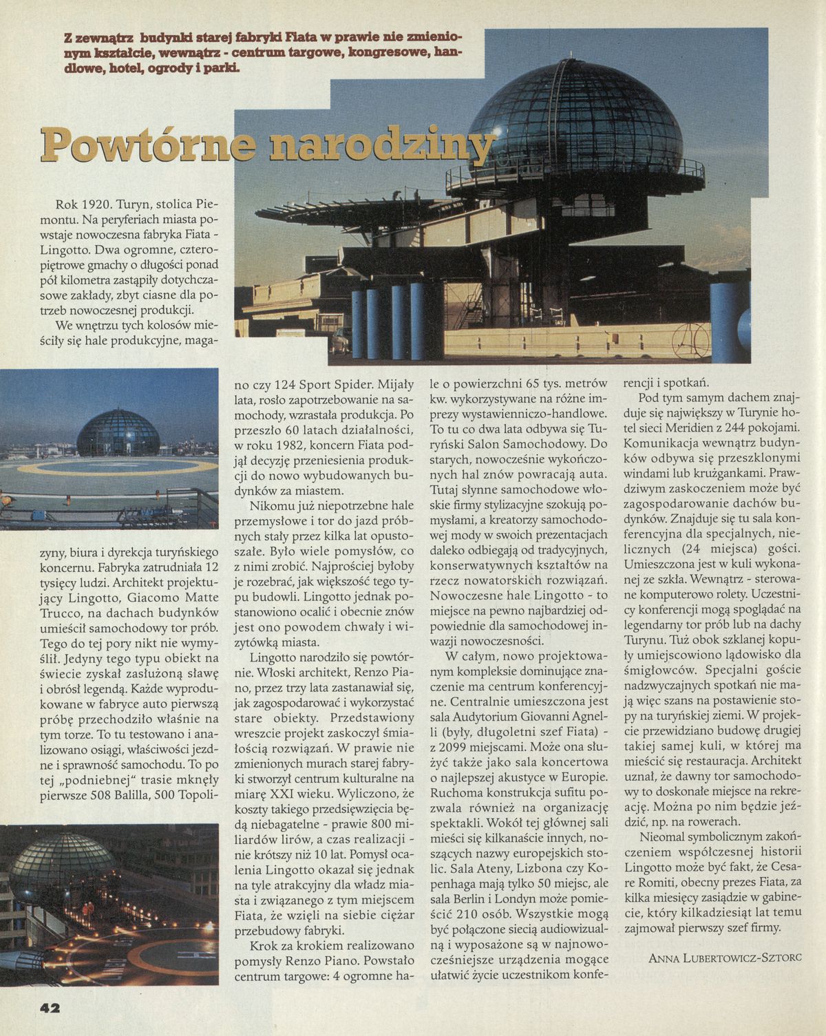 Archiwum / Artykuł nr specjalny 24/1996 66/68 Podziel się Tytuł Powtórne narodziny Autor Anna Lubertowicz-Sztorc Kategoria Artykuł Artykuł z numeru nr specjalny 24/1996 Data wydania 16 czerwca 1996 Tagi Turyn Piemont Fiat fabryka
