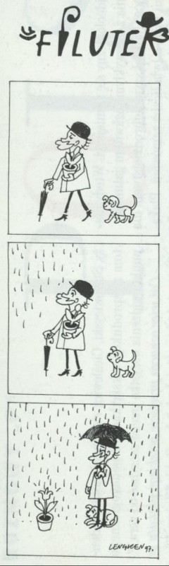 Archiwum / Profesor Filutek nr 2708 (20/1997) 31/50 Podziel się Tytuł Prof. Filutek Autor Zbigniew Lengren Rubryka Profesor Filutek Artykuł z numeru 2708 (20/1997) Data wydania 18 maja 1997 Tagi żart rysunkowy pies Filuś deszcz kwiatek