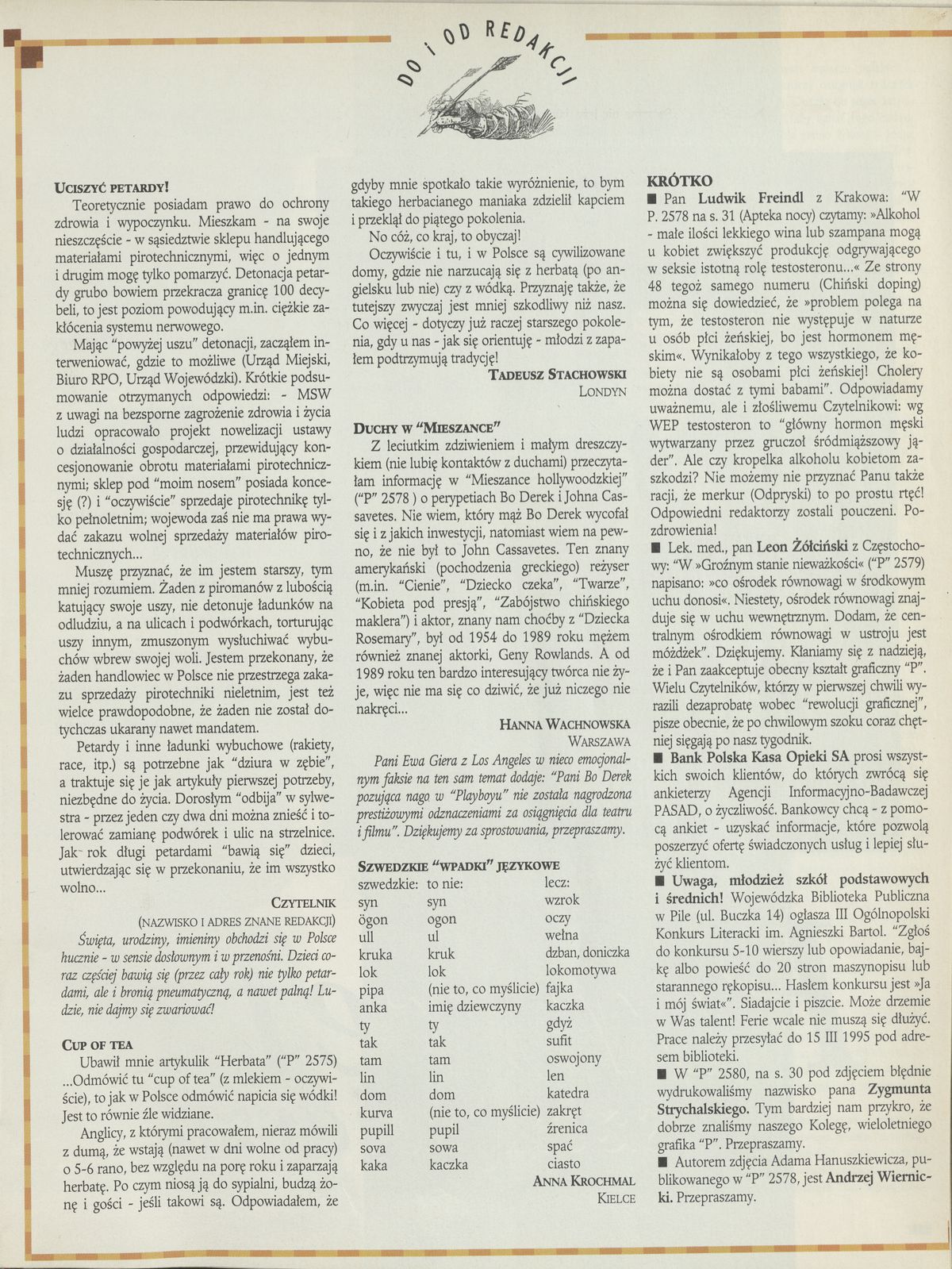 Archiwum / Listy do i od redakcji nr 2584 (01/1995) 46/46 Podziel się Tytuł Do i od redakcji Rubryka Listy do i od redakcji Artykuł z numeru 2584 (1/1995) Data wydania 1 stycznia 1995
