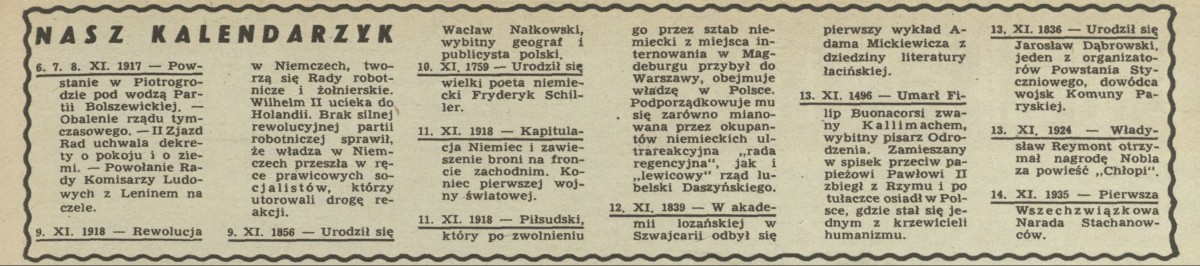 Archiwum / Rozmaitości [old] nr 448 (45/1953) 294/2346 Podziel się Tytuł Nasz kalendarzyk Rubryka Rozmaitości [old] Artykuł z numeru 448 (45/1953) Data wydania 8 listopada 1953