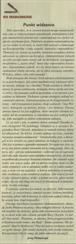 Archiwum / Felieton nr specjalny 2801/1999 458/500 Podziel się Tytuł Na marginesie. Punkt widzenia Autor Jerzy Piekarczyk Kategoria Felieton Artykuł z numeru nr specjalny 2801/1999 Data wydania 21 lutego 1999 Tagi polityka reformy pensje