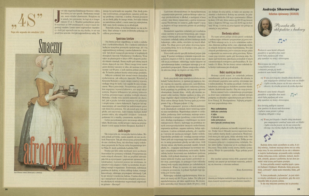 Archiwum / Artykuł nr 2733 (45/1997) 9/9 Podziel się Tytuł Smaczny afrodyzjak Autor Maria Kapiszewska Kategoria Artykuł Artykuł z numeru 2733 (45/1997) Data wydania 9 listopada 1997 Tagi Aztek afrodyzjak