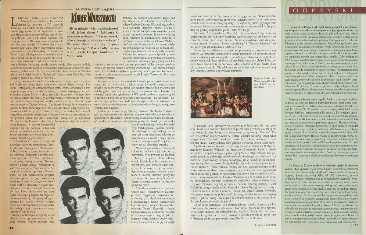 Archiwum / Kurier Warszawski nr 2605 (22/1995) 97/1986 Podziel się Tytuł Kurier Warszawski Autor Lucjan Kydryński Rubryka Kurier Warszawski Artykuł z numeru 2605 (22/1995) Data wydania 28 maja 1995 Tagi teatr Roma Hanuszkiewicz