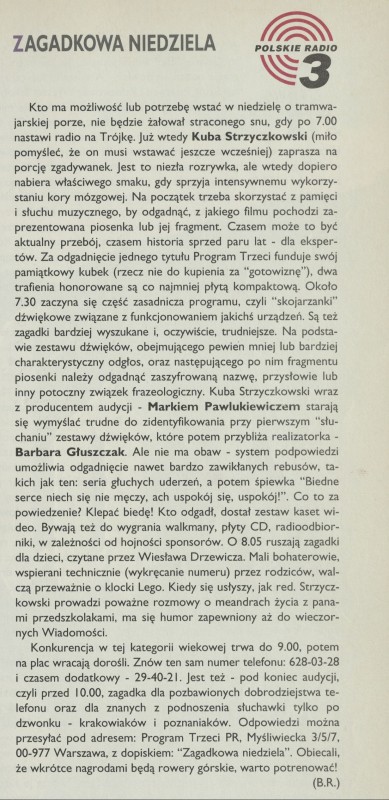 Archiwum / Artykuł nr 2605 (22/1995) 53/85 Podziel się Tytuł Zagadkowa niedziela Kategoria Artykuł Artykuł z numeru 2605 (22/1995) Data wydania 28 maja 1995 Tagi polskie radio Kuba Strzyczkowski